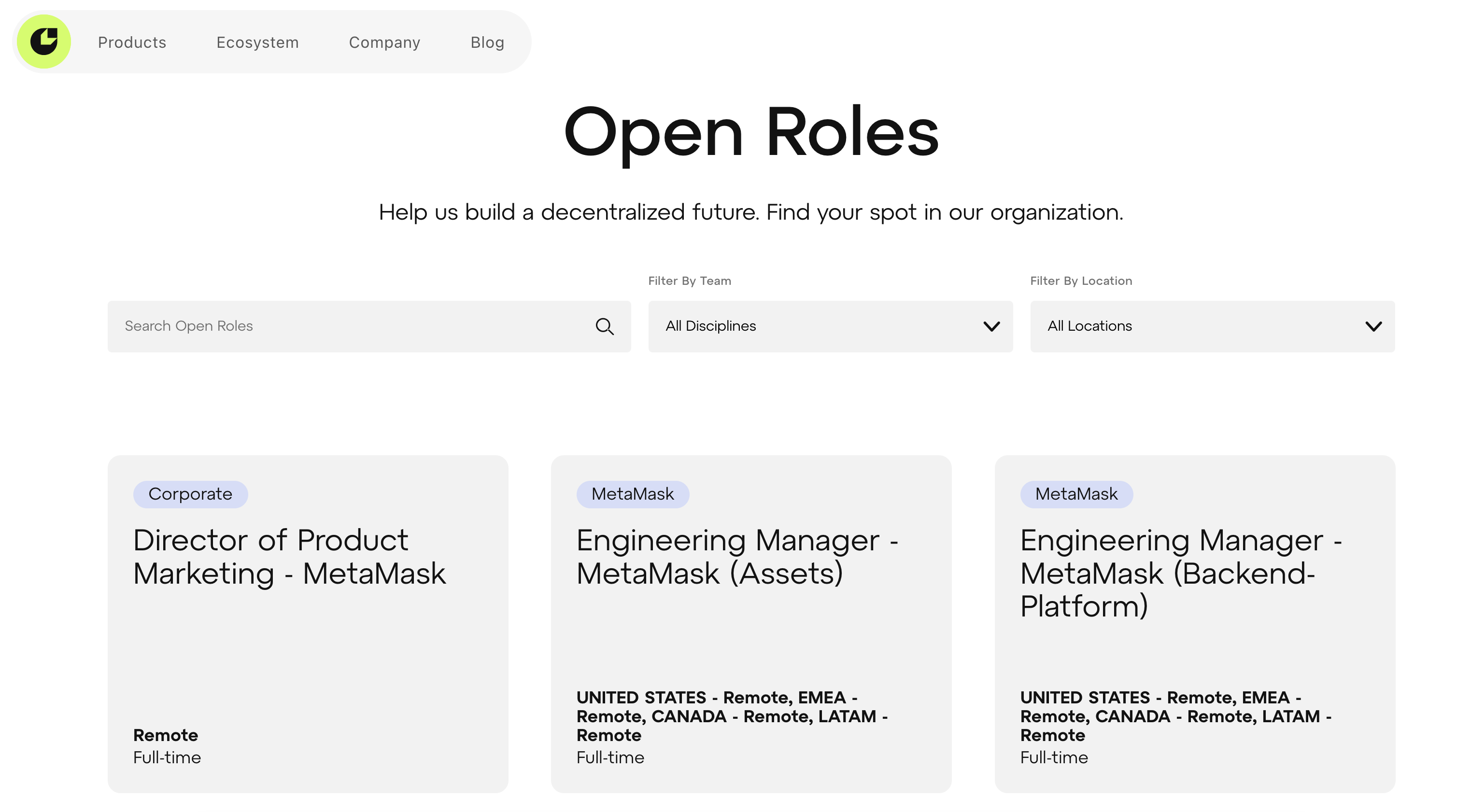 The company behind MetaMask, Infura, Truffle, and Linea. MetaMask is expanding beyond a wallet into payments, real-world spending through the MetaMask Card, fiat on-ramps and prediction markets. The team is hiring across product and platform engineering, with 15 open roles.
